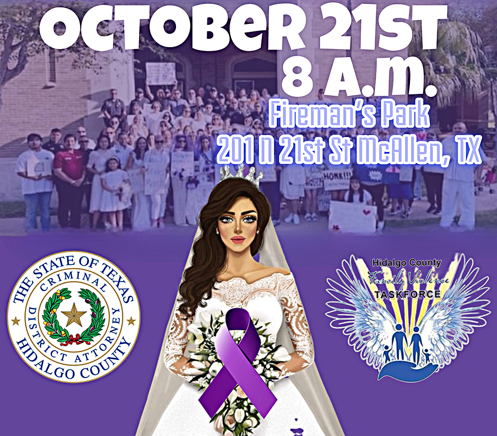La Oficina del Fiscal de Distrito Penal del Condado de Hidalgo y el Grupo de Trabajo contra la Violencia Familiar del Condado de Hidalgo organizan la marcha que iniciará en punto de las ocho de la mañana en Fireman’s Park, ubicado en 201 N. 1st Street en McAllen, Texas.