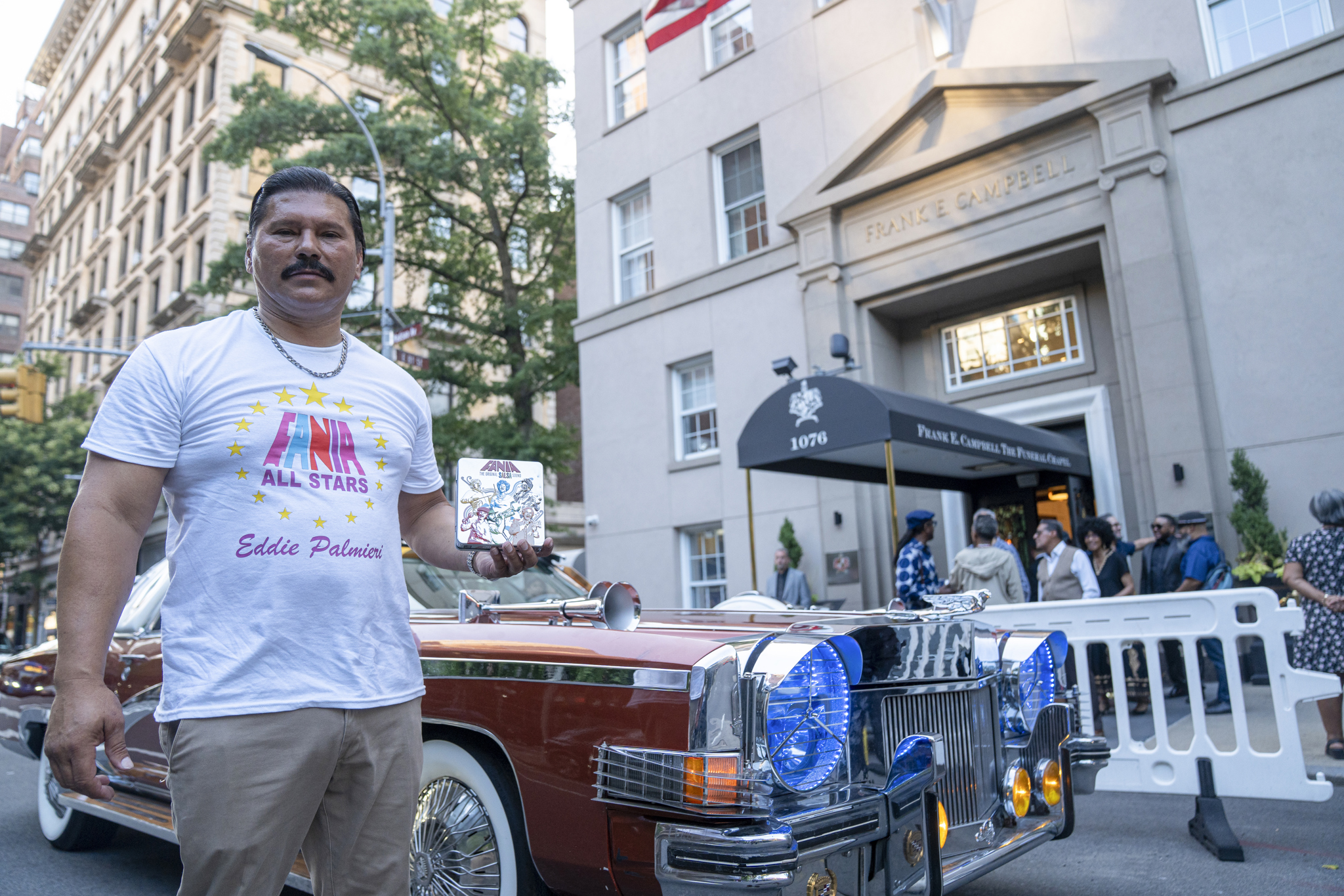 Cedeño, que llegó antes de que la funeraria abriera para el velatorio, se mantuvo fuera durante horas sosteniendo un pequeña bocina que permitía a todos escuchar la música que Palmieri llevó a todas partes del mundo.