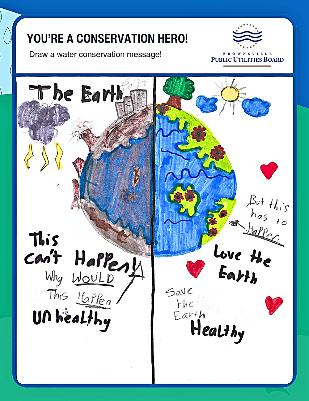 Brownsville. – Los ganadores del Concurso de Dibujo Superhéroes de la Conservación del Brownsville Public Utilities Board (BPUB) ya se han elegido. Este concurso, con fin de promover la conservación del agua y la electricidad entre estudiantes grados 1-5, ha destacado la necesidad de conservación y exhibido el talento de los estudiantes dentro del área de servicio de BPUB.