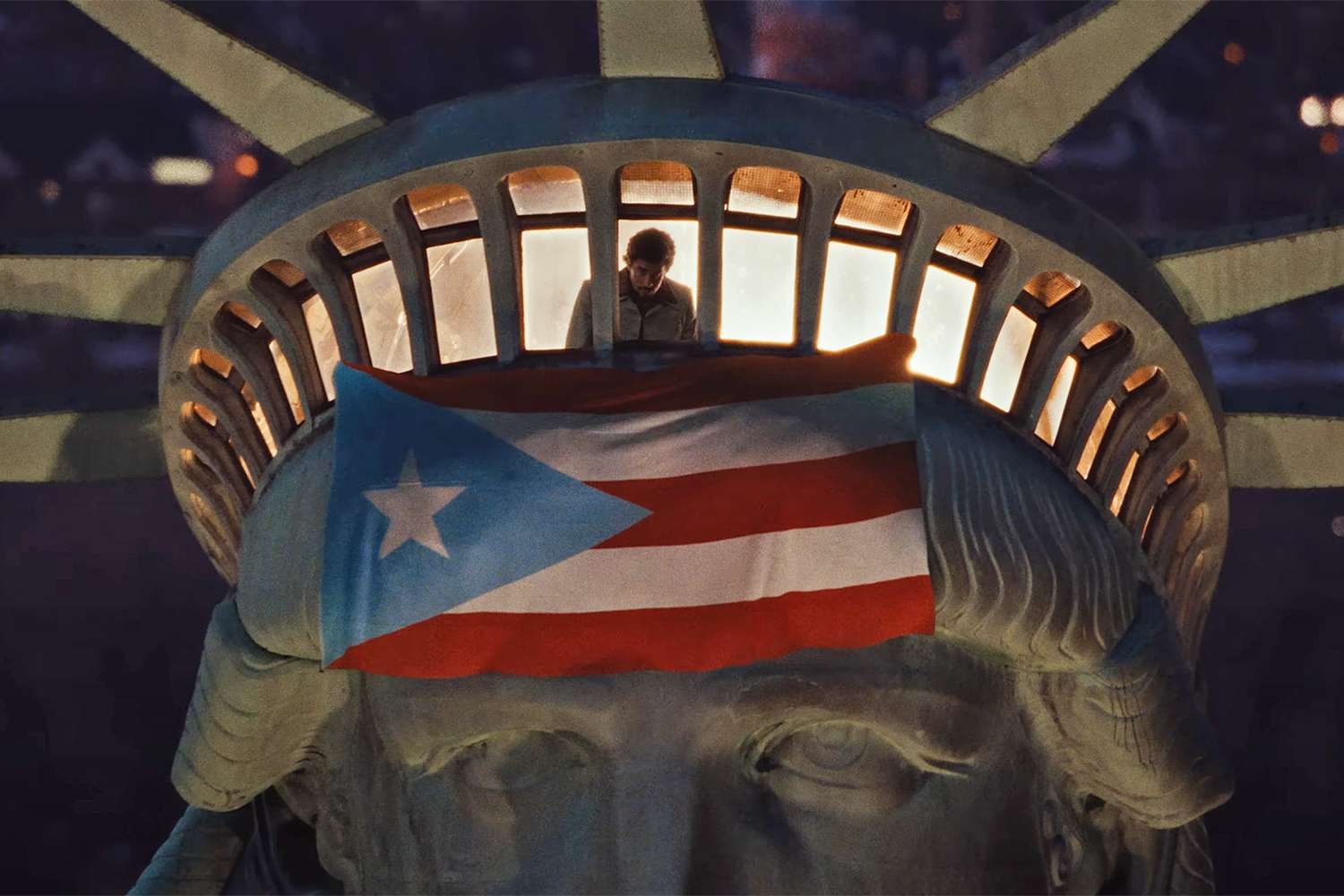 En el video, también aparece la estatua de la libertad con la bandera de Puerto Rico en la frente y con el azul de la misma en color celeste, que es el tono utilizado por aquellos que rechazan la anexión de la isla a EE.UU.