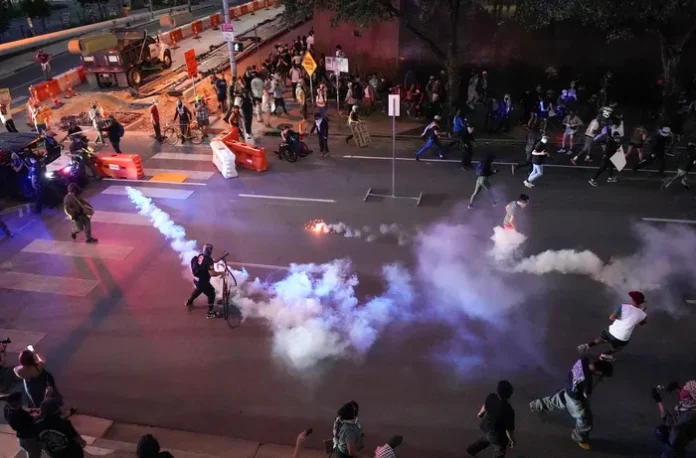 En Dallas, por su parte, la Policía comenzó a dispersar a los manifestantes sobre las 10 p.m. (hora local) y también lanzó gas pimienta contra las personas que cargaban pancartas con mensajes como “nadie es ilegal” o “fin a las políticas de deportación”.