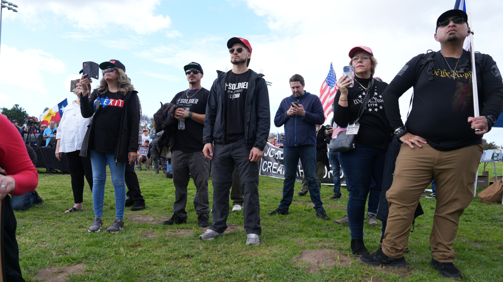 Los asistentes al evento, que tuvo una notable seguridad, llegaron principalmente del sur de California, pero el contingente incluyó residentes de distintos puntos del país. Algunos ondeaban banderas del estado de Texas.