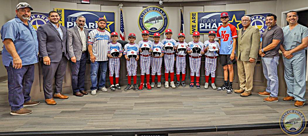 Pharr, Tx.- El alcalde de Pharr, Dr. Ambrosio Hernández y los comisionados de la ciudad, felicitaron a los jugadores del equipo de béisbol de la liga de verano de la división 10U, Hidalgo Bandits.