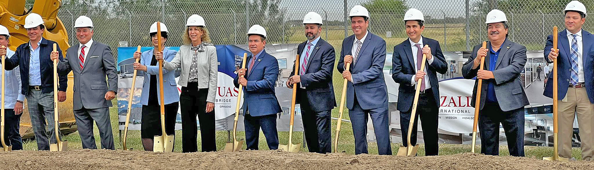 Mission.- Dentro de un ambiente de gran entusiasmo, autoridades y legisladores de la región llevaron a cabo la ceremonia de iniciación de construcción del puente de carga comercial Anzaldúas, en el lado americano, con la intención de mejorar el transporte desde una nueva área del Valle de Texas con Reynosa.