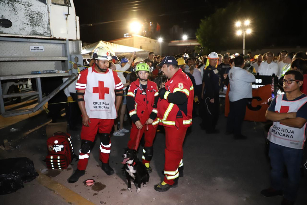 Previamente, binomios caninos de la Cruz Roja y de la Secretaría de Marina también se sumaron a las labores para hallar a personas atrapadas entre los escombros, además de dos células de paramédicos de la Cruz Roja Mexicana especializados en tareas de rescate de estructuras colapsadas.