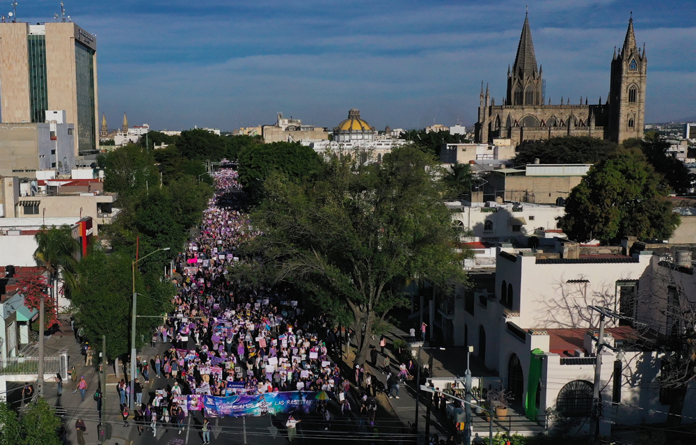 En Guadalajara, capital de Jalisco, en el oeste de México, la protesta se dividió en dos, una de ellas convocada por organizaciones radicales y separatistas y otra más nombrada ‘Florecemos desde las resistencias’.