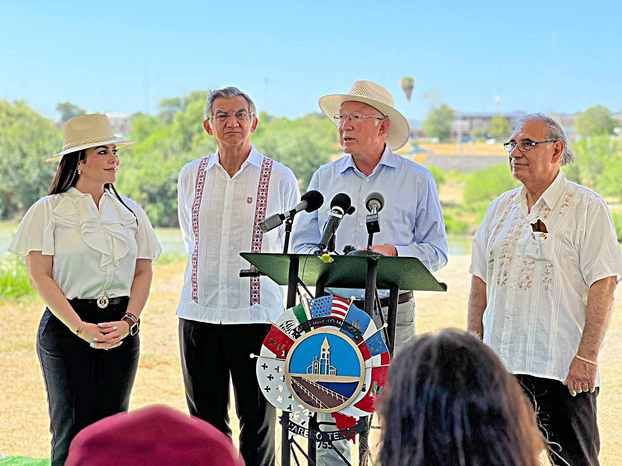 En las márgenes del río Bravo, en el lado texano y luego de una reunión privada y de realizar un recorrido por el sendero Las Palmas, abajo del Puente Internacional 2, para conocer el proyecto del Parque Binacional, el embajador de los Estados Unidos en México y el gobernador de Tamaulipas coincidieron en la importancia de impulsar de manera conjunta la relación entre México y Estados Unidos.