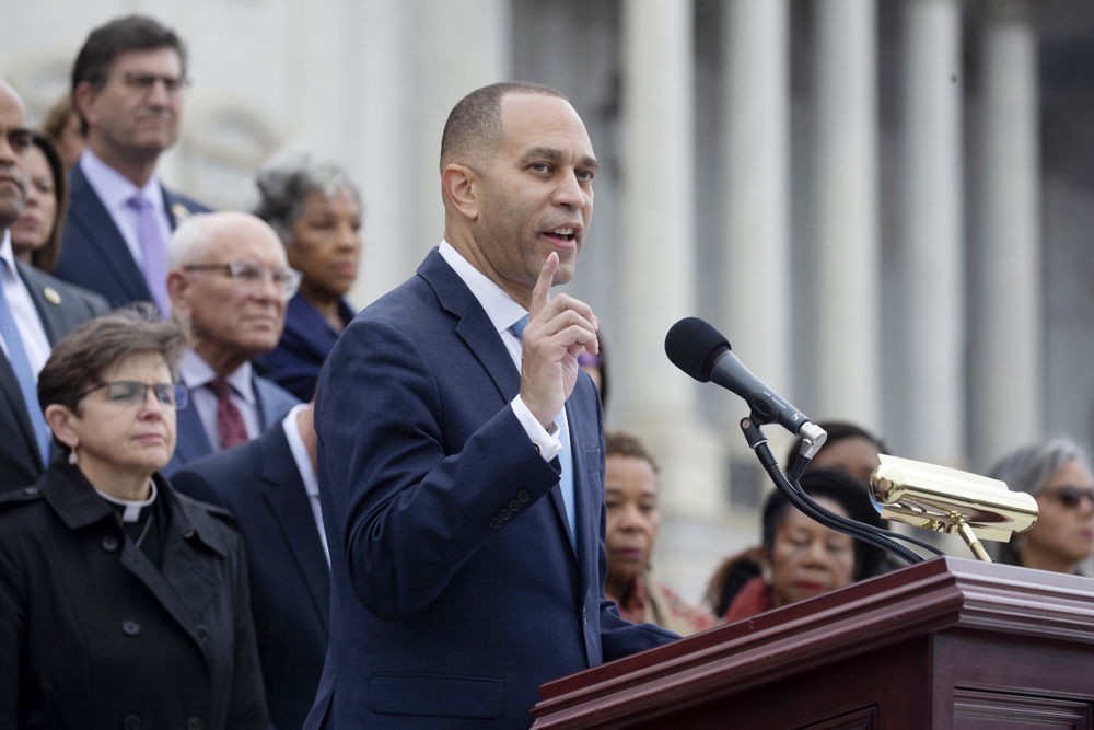 El líder demócrata Hakeem Jeffries también aplaudió la entrada de nueve nuevos representantes de origen latino, como el primer legislador de la Generación Z, Maxwell Alejandro Frost, o la primera congresista latina en representar a Colorado a nivel federal, Yadira Caraveo.
