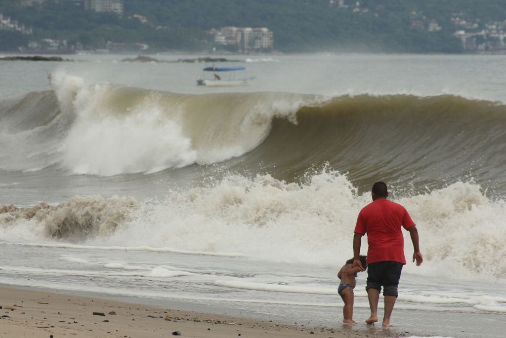 Asimismo, el reporte avisó de viento con rachas de 70 a 90 kilómetros por hora y oleaje de 4 a 6 metros de altura en Jalisco, Colima y Michoacán, además de rachas de 50 a 70 kilómetros por hora y oleaje de 3 a 5 metros de altura en Guerrero.