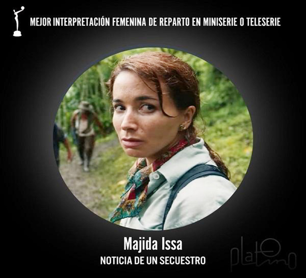 Bogotá, (Notistarz).- La actriz colombiana Májida Issa, se mostró feliz por su nominación a la “Mejor Interpretación Femenina de reparto en miniserie o teleserie” de los Premios Platino en la serie “Noticia de un Secuestro” basada en la obra del Nobel Gabriel García Márquez.