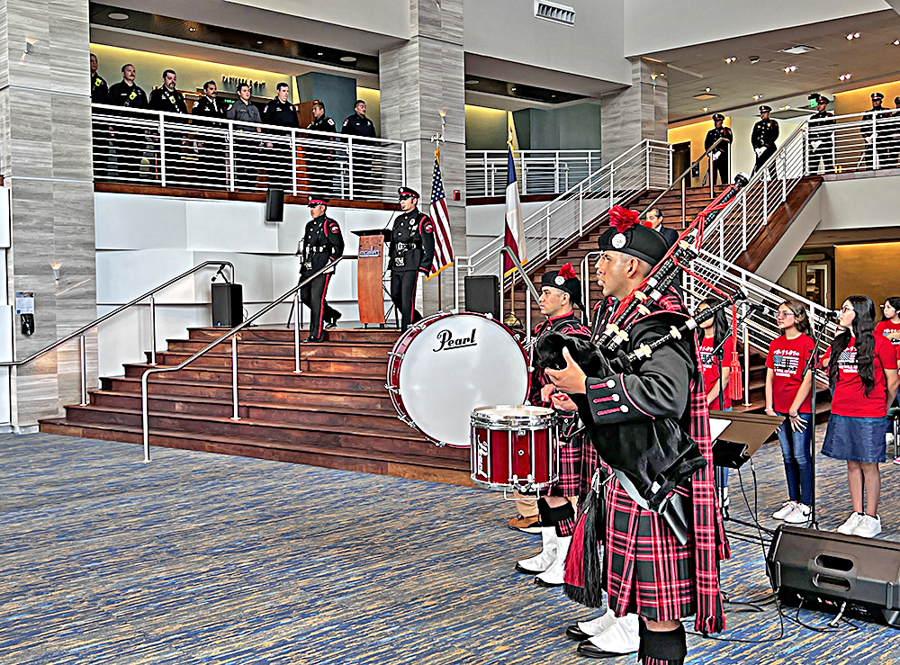 En la ceremonia del pasado lunes se contó con la Guardia de Honor de la Policía de McAllen, Guardia de Honor de Bomberos de McAllen y Cuerpo de Gaitas y Tambores.
