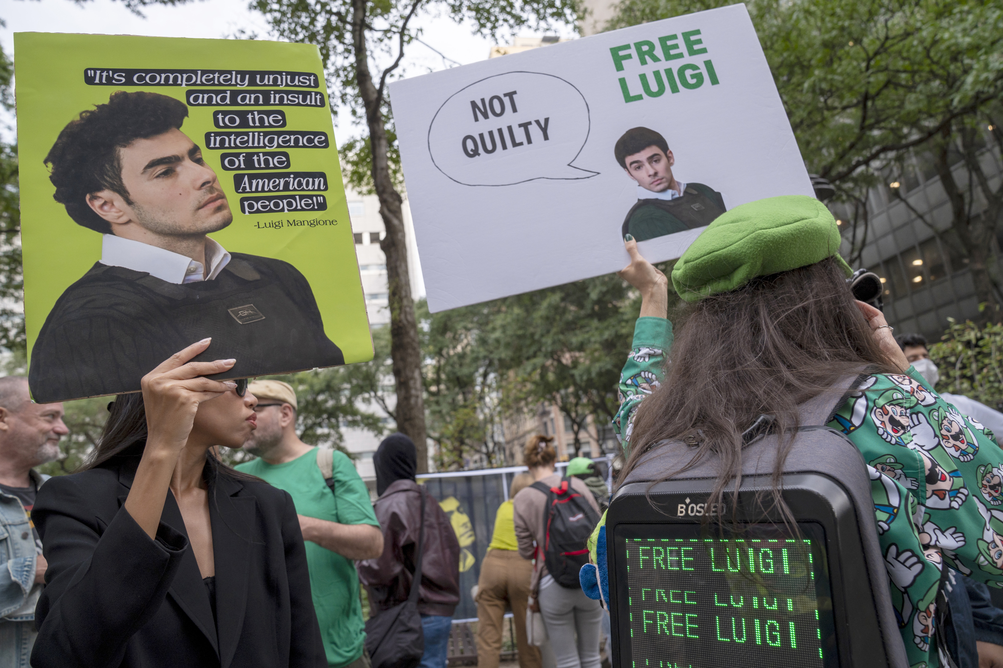 De hecho, a las afueras del tribunal se reunían decenas de seguidores del joven portando pancartas en las que podían leerse consignas como “la salud antes que la riqueza”. Algunos, incluso, lucían gorras y disfraces de Luigi, el característico personaje del videojuego Mario Bros.