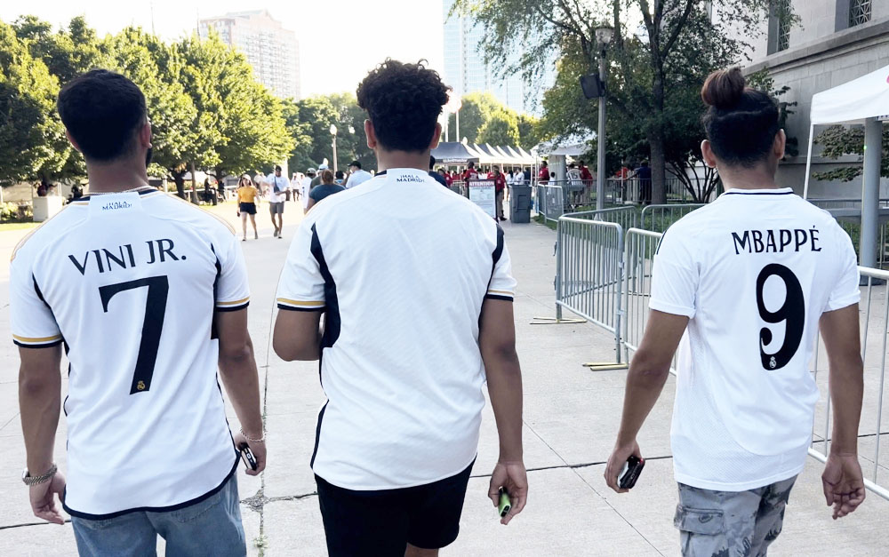 Mbappé, Vinícius Junior y Jude Bellingham son los nombres que más se ven en las camisetas de los muchos aficionados locales que acudieron al Soldier Field para ver el primer ensayo del Madrid de cara a la nueva temporada.