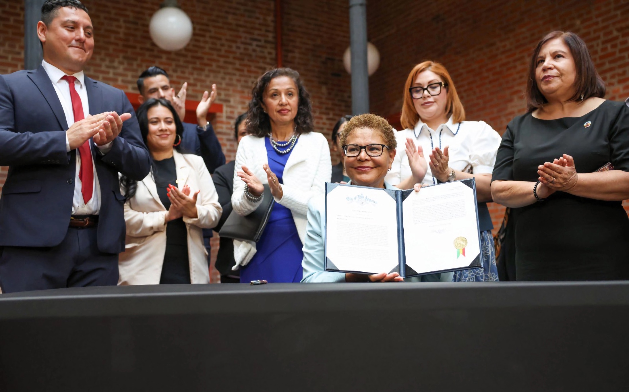 Este viernes, la alcaldesa también firmó una orden ejecutiva que refuerza los protocolos municipales que prohíben el uso de recursos de la ciudad para la aplicación de la ley migratoria, amplía el acceso a recursos para las familias afectadas, establece un nuevo grupo de trabajo del Departamento de Policía de Los Ángeles (LAPD) y solicita registros de agencias federales sobre redadas ilegales.