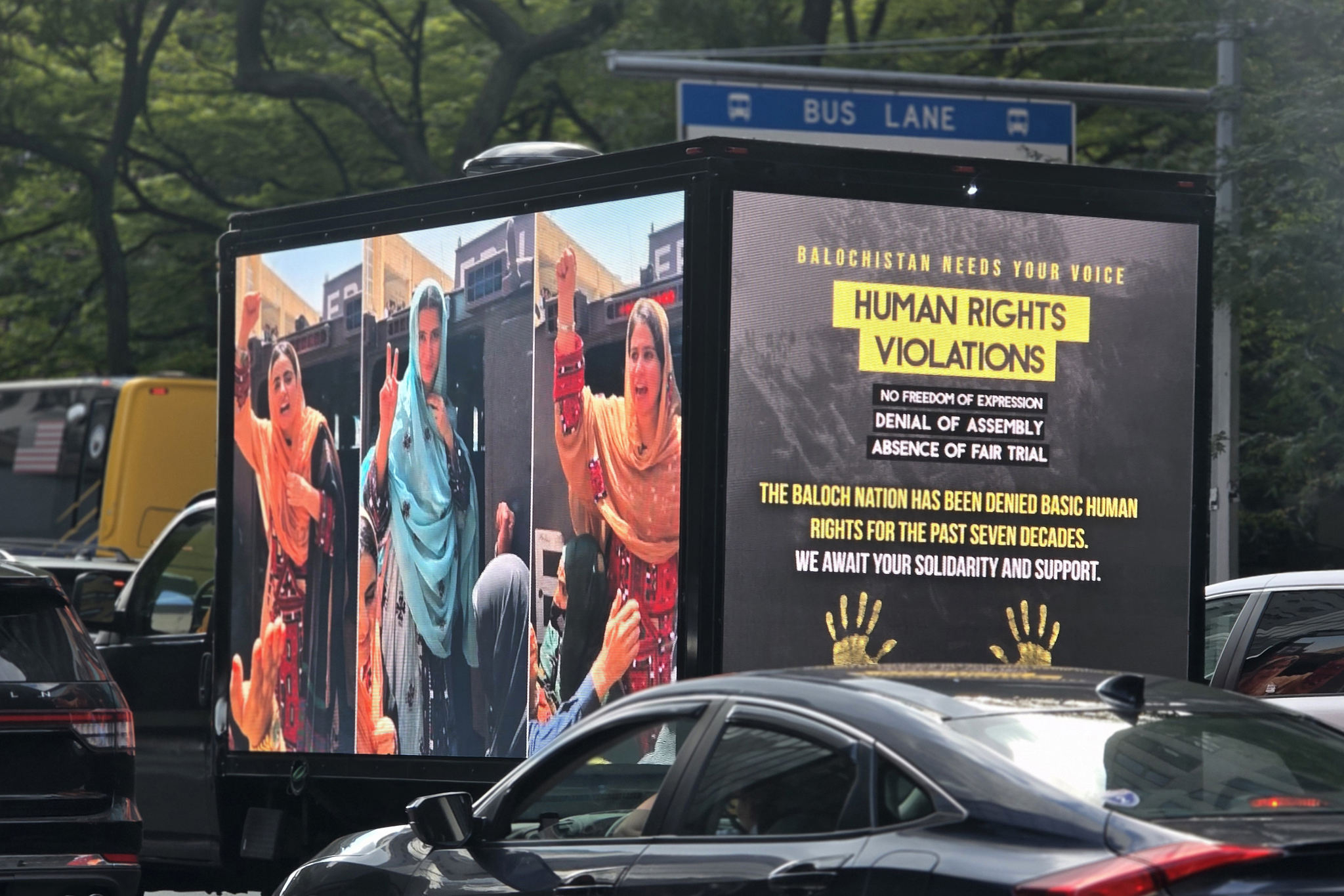 En el congestionado este de Manhattan, donde está la sede de la ONU, los viandantes se toparon sobre todo con campañas móviles, desde denuncias a mandatarios como el israelí Benjamin Netanyahu, central este año en la ONU, hasta la defensa de los derechos humanos en la región pakistaní de Balochistán.