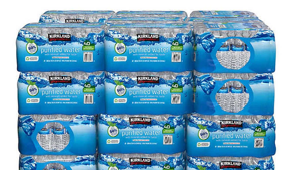 Las personas pueden donar uno o más paquetes de agua en una instalación en la acera para la seguridad y tranquilidad de los clientes.