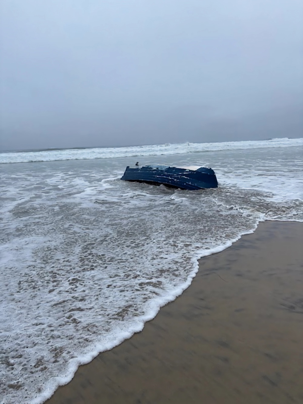Un residente del área que suele caminar en la zona captó en video cuando la embarcación naufragó poco antes de llegar a la playa. Las imágenes muestran una ola volteándola y sus ocupantes flotando en el mar.