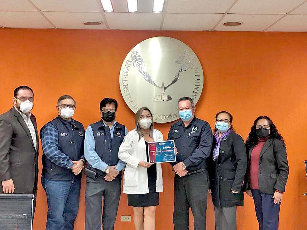 Su reciente logro, representa un gran orgullo para la comunidad universitaria de la Facultad de Medicina e Ingeniería en Sistemas Computacionales de la UAT, como así se lo hizo saber el Director de la FMEISC, Dr. Pedro Luis Mendoza Múzquiz, al entregarle un reconocimiento a nombre de esta casa de estudios.
