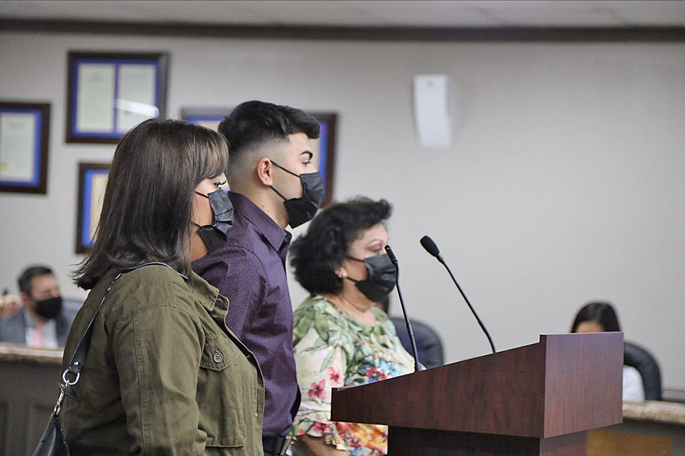 Pharr, Tx.- La Comisión de la Ciudad de Pharr reconoció al estudiante de último año de la Escuela Preparatoria PSJA Southwest Early College, Jorge Piñón, quien aceptó una beca de fútbol para jugar con los Beavers de la Universidad Buena Vista de Storm Lake, Iowa.