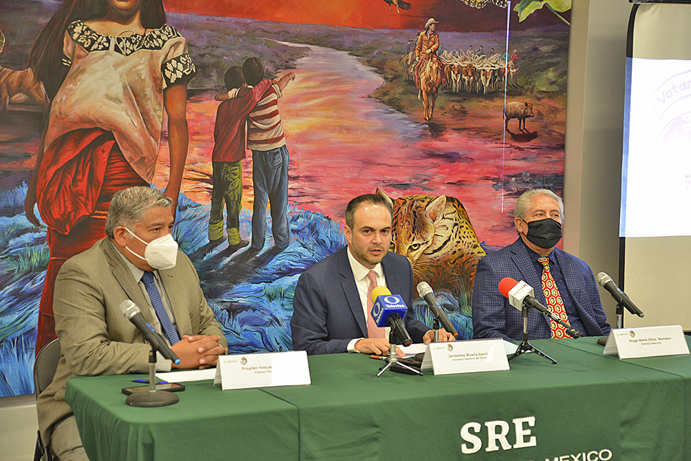 En rueda de prensa en el Consulado de México en esta ciudad, acompañado del cónsul Froylan Yescas Cedillo y el cónsul adscrito, Hugo René Oliva, el consejero Rivera García señaló que por primera vez se podrá votar desde el extranjero para los comicios del domingo 5 de junio de 2022, el cual, renovará la gubernatura en Tamaulipas.