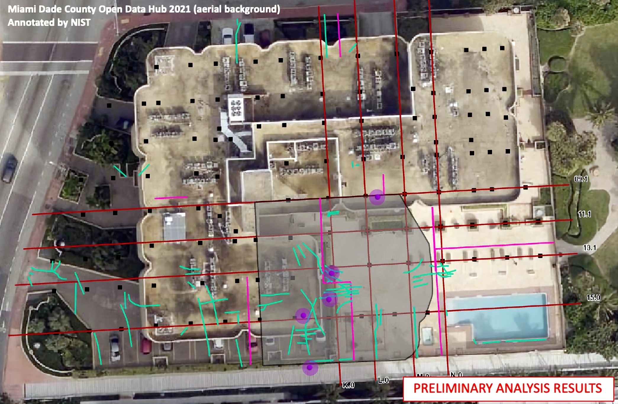 La investigación del Instituto Nacional de Estándares y Tecnología (NIST, en inglés) también reforzó la conclusión preliminar sobre que el desmoronamiento comenzó en el área de la piscina en lugar de en la torre per se, donde ocurrió una de las mayores tragedias inmobiliarias en la zona metropolitana y costera de Miami.