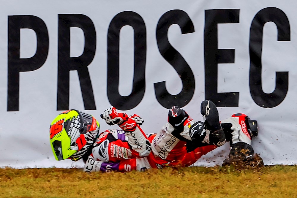 En ese tiempo Dennis Foggia se encaramó hasta la primera posición, superando en casi cuatro décimas de segundo a su compatriota Niccolo Antonelli, y a Andrea Migno (Honda), que tuvo un ligero percance en el que rompió el estribo izquierdo de su moto, con Acosta en la quinta plaza.