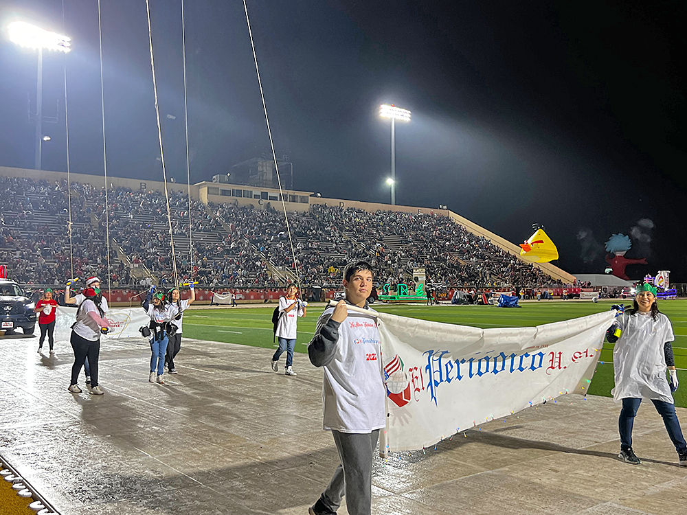 Aunque el cielo lucía nublado y la lluvia se hacía presente en momentos previos a la hora que estaba señalada para el desfile, los espectadores no perdieron el ánimo festivo; miles de familias del Valle de Texas, con paraguas e impermeables, llenaron los asientos del McAllen Veterans Memorial Stadium la noche del sábado, mientras esperaban ansiosamente el comienzo del Desfile Navideño de la ciudad de McAllen.