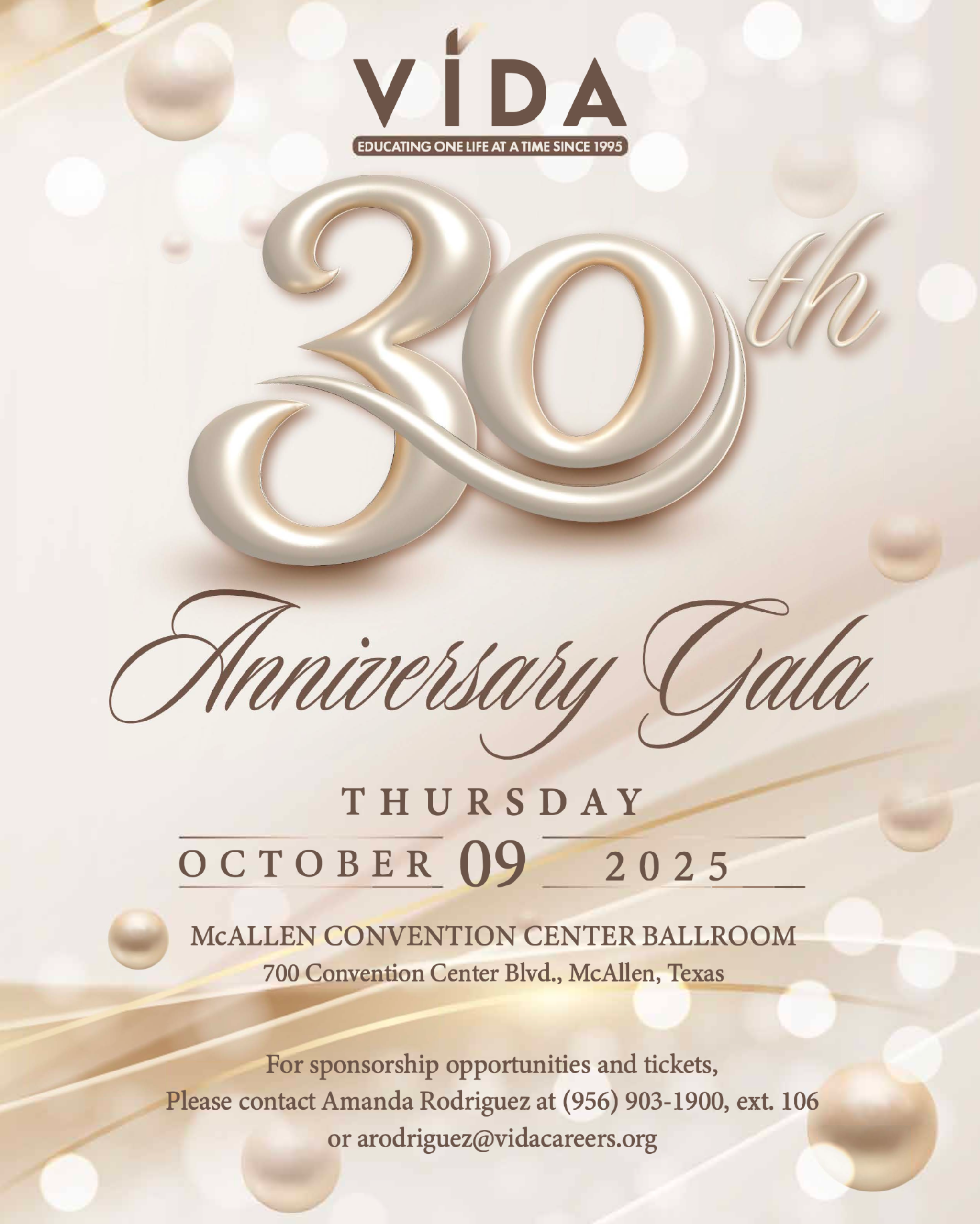 El próximo jueves 9 de octubre, VIDA celebrará su Gala del 30 Aniversario en el McAllen Convention Center Ballroom. Para Villarreal, este evento representa más que una celebración: “Queremos agradecer a la comunidad y a todos los socios que nos han apoyado durante estos años. También buscamos inspirar a otros a seguir creyendo que siempre es posible retomar los estudios o cambiar de carrera para mejorar su futuro”.
